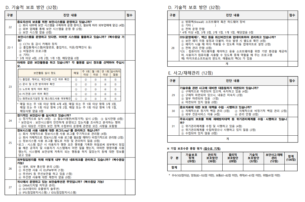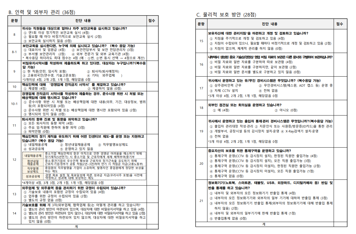 ±â¼úÀ¯Ãâ¹æÁö½Ã½ºÅÛ ±â¼úº¸È£ ¼öÁØÆò°¡Ç¥(Áß¼Ò±â¾÷)